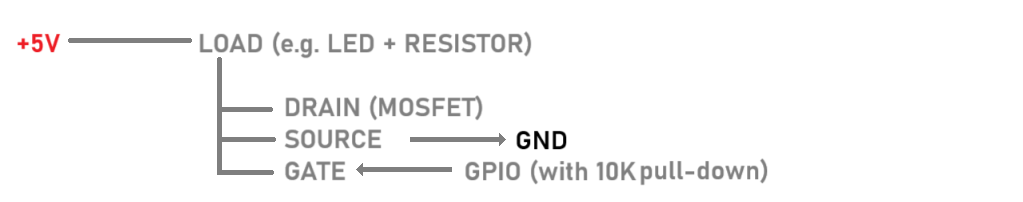 A MOSFET switch is often used to control power to a load (motor, LED, circuit board, etc.).